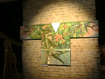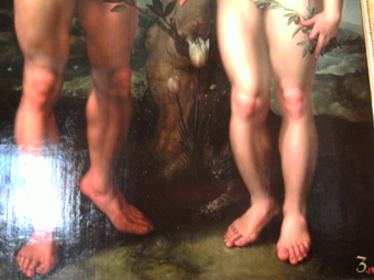 Еще о выставке и об избранных хищниках: остроухий кот с местной картины голландца Голциуса "Адам и Ева", воспроизведенный на пригласительном билете праздника. Кошка-"собака" Фисташка, живущая отсельницей от своих сородичей, охраняя единственный выход из подвала в залы экспозиции, и видимо страдающая от нехватки общения, поскольку привязывается к редкому подвально-прохожему аборигену и сопровождает его аки пес, не отставая и преданно заглядывая в глаза.
