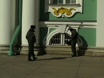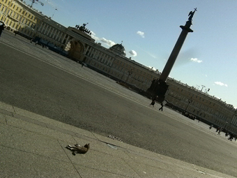 Есть и "туристический" кот, который весь прошлый сезон выходил на Дворцовую площадь погреться на солнышке и пофотографироваться с туристами, вот он, валяется у фонаря, особая примета - задние лапы длиннее передних, поэтому ходит "дыбом". Но этой весной первым вышел на площадь - 25-го марта - другой экземпляр, за что был схвачен и обласкан проходящими мимо ментами.