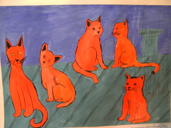 Тут же выставлялись и картинки профессиональных питерских художников, из лучших: "Коты в георгинах", "Любовь и яблоки", "Рембрандтовский кот".