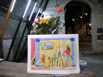 Детская эрмитажная изостудия тоже поучаствовала в выставке, рядом со снимками висели работы детей от 5 до 12 лет возрасту, к примеру "Матиссовы коты на крыше Зимнего" - как парафраз эрмитажной работы Матисса "Музыка".