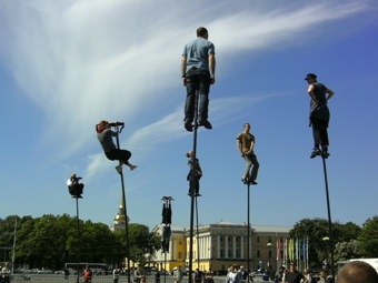 Этот финиш спровоцировал взрывы улично-театральной деятельности двадцати затаившихся допрежь коллективов из разных стран мира в формах, присущих им эндемически (австралийские «странные фрукты») и не очень присущих («залеточка канадский»), или даже совсем не присущих (свалившиеся с луны петебуржцы «moon people»).