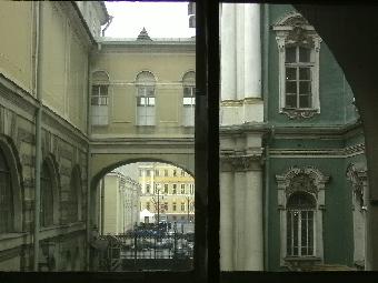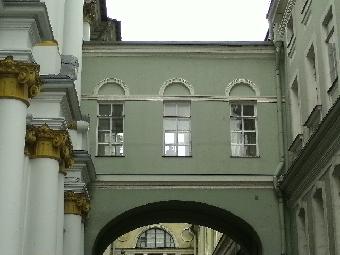 Этот с виду прозаичный переход на высоте второго этажа соединяет здания Зимнего Дворца и Малого Эрмитажа, и наш дозор должен запереть двери сперва с одной стороны перехода (фото №2), а затем, пройдя его, с другой (фото №3).