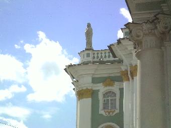А теперь взгляните на фото №12: женская статуя на крыше того же угла дворца, единственно выкрашенная отчего-то в белесый, если так можно сказать, цвет - кто она? Не знаю. Но вдруг это… впрочем – молчу, молчу. Что же касается виршей Кирова, то вот один (орфография и пунктуация авторские): Соблюдая традиции прошлого Мы обход в Эрмитаже ведем. По маршруту, что нам лишь известен Мы три раза его обойдем. Здесь нас четверо, все мы серьезны, И ответственность здесь велика… Мать – царица – Екатерина Нам в наследство обход отдала. Все здесь тихо, торжественно важно, Экспонаты встречают гостей… Тот, кто сердце отдал Эрмитажу Стало смыслом всей жизни своей. Но один мы вопрос проглядели, Был ограблен здесь «Русский отдел» Кто та мразь, что так нагло посмели Кто ограбить отдел захотел?! Эта банда без совести, чести, Опозорила наш Эрмитаж… «Не нашли» эту банду в России Назовем это мы – саботаж! У веревочки кончик найдется… Так и здесь, эту банду найдем, Все узнается, мы точно знаем, И к ответу шпану позовем! В том числе бы и призрачную, - добавлю я. Чем мы, эмчеэсовцы (фото №13), хуже Эйкройдов и Мюрреев?