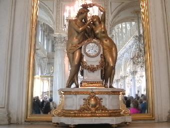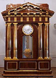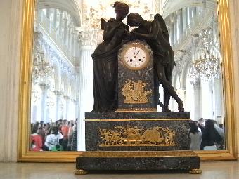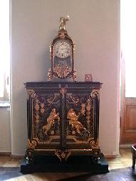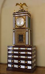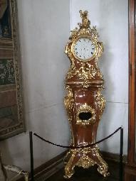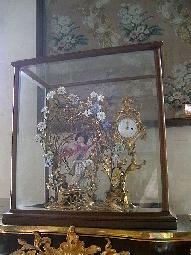 и мы - миновав Альгамбру (второе имя Малого Фельдмаршальского зала), где высятся напольные часы-секретер с механическим органом и орлом на макушке, подаренные Екатериной Второй внуку Александру Первому в день его бракосочетания - входим в череду интерьеров Франции века 18-го, вуаси: беседка с часами золоченой бронзы у окна и - вуаля: в правом углу и ауте напольные «рококо», лишенные стрелок и выбывшие - увы! - из темпорального чемпионата.