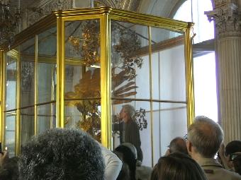 По гурьевским часам. Экскурсия.2010-07-23. Leonid Engalichev Не знаю как в Ванкувере, а в Питере, если спросить у прохожего на улице который час, то вопрошаемый скорей всего полезет в карман за мобильником, так мало стало носящих наручные часы. Зато в Государственном Эрмитаже время спрашивать излишне, часы - за каждым поворотом. Некоторые счастливчики (скажем, отчаянный Антонио Бандерас, проболтавшийся недавно в залах музея помимо полуторачасовой спецпрограммы, обязательной для звезд, еще часа четыре) часов не наблюдают. Но мы, вынужденные жить по штатному рабочему расписанию, не можем ими, часами, пренебречь, а потому добро пожаловать на экскурсию «по часовым местам Эрмитажа». Гидом-дилетантом буду я, а что до профессионалов (не экскурсионных, а часовых), то профессионал вот он, знакомьтесь - Главный часовщик Зимнего дворца, заведующий лабораторией научной реставрации часов и музыкальных механизмов Эрмитажа Гурьев Михаил Петрович - спешит через Дворцовую площадь от дверей Главного штаба к воротам Зимнего, ведь близится час пополудни, а нынче среда - день, когда «заводят павлина».