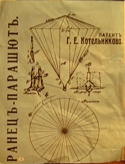 Сказ2010-08-22. Leonid Engalichev А теперь нашлась нам в небе работа – синевою наполнять парашюты! (из гимна десантников) А не лепо ли ны бяшет, братие, начяти старыми словесы трудных повестий о… о российских Воздушно-Десантных Войсках? «Не лепо!» – отрубит речистый былинщик Тимур Шаов, но мы его не послушаем, поелику войскам тем числа второго месяца августа года нынешнего стукнуло 80 вёсен, то есть родились оне при советской власти ажно тысячу девятьсот тридесятого лета от рождества Христова. Именно тогда первая группа десантников надела парашюты и прыгнула с ими не затем, чтобы спасти свои животы, как это делали допрежь пилоты подбитых самолетов, а с определенной загодя целию. И надобно молвить, что средь людей, имеющих отношение к этим войскам, десантником № 1 считается автор-инициатор создания средств-методов ведения войны воздушным десантом Маргелов Василий Филиппович, командовавший ВДВ страны в 1954 -1979 годах. С его именем связаны авторитет и популярность этих войск, что нашло отражение в шуточной расшифровке аббревиатуры ВДВ — «Войска дяди Васи». «Тот, кто ни разу в жизни не испытывал радости и страха свободного падения, свист в ушах, струю ветра бьющего в грудь, тот никогда не поймёт чести и гордости десантника…» - такой вот дядя. А раз он Вася, то давайте и отправимся «на Васю», как расхожий жаргон повадился редуцировать название одного из районов города Петербург, а именно Васильевский остров. Отправимся ж – но не из формализму, а чтоб припасть к истокам этого воздушного течения, ибо исток его есть па-ра-шют, да не простой, каковой в 1900-х годах не был пригоден для использования водилами аэропланов, а именно - ранцевый. Эх, парашют! Ранец- парашют! – и кто тебя выдумал? А я скажу вам, кто: Глеб Евгеньич Котельников выдумал, когда жил-проживал на том самом острову, в линии 14-ой, в квартире 20-ой третьего этажа доходного дома…