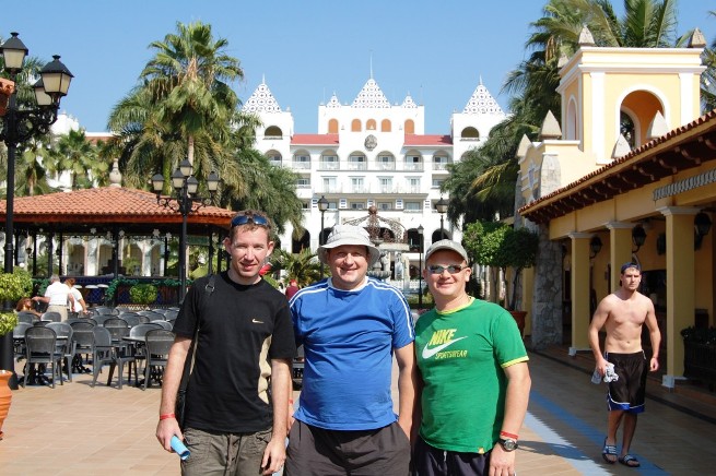 #1это наш 5-ти звездочний отель(очень прилично) #2-просто турист из нашего отеля,......дни насыщены очень плотно так что некогда зайти на и-нет,с утра завтрак,(плотный)затем утреннее купание в океане,затем разминка в баре,потом воллей бол уровень достойный, мы в 3 ем не успеваем сдерживать натиск легионеров со всего мира привлекаем помощь ребят из СИетла, и вперерывах принимаем допинг(холодное пиво)....после обеда небольшой отдых и мини футол!сегодня был первый матч и сборная 828(отборная мексиканская делигация -Попов,,Белобородов,Гуздь, и парень изСиэтла -Бен(венниамин) разгромили сборную Мексики:5-3,4-2,1-0 победы дались в очень(тяжелых условиях +30с) затем душ,ужин....... с коньяком,великолепное шоуи если остались силы то доходишь до номера сам то там мини бар (фото приложу позже)то общение идет на прямую если жена уснула......если нет то когда она отвернеться!.......вообшем не хватает вас всех , а оссобенно ребят из пи-клуба!!
