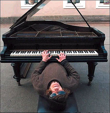 Как Пьяццола своими танго, О.К. славится вальсами. Почему вальсами предположительно понятно, ибо как танго это пампасы, так вальс это классицизм, а где ж его больше, чем в окружающей этого живого классика архитектуре Петербурга? Зимой 2005-го я заглянул на концерт в бывшую лютеранскую церковь Св. Екатерины (в советское время филиал студии звукозаписи «Мелодия», и сейчас благодаря прекрасной акустике используется для записи и проведения концертов классической музыки) на Большом проспекте В.О. и увидел выбегающего из нее О.К. В том же году вышел единственный CD композитора «Вальсы и антракты», куда вошли исполненные им же фортепьянные опусы с такими названиями: «Последний вальс Николая Второго», «Вальс Екатерины Великой с ее фаворитами», «Сулико»(!), «Вальс нобелевских лауреатов», «Вальс «Аврора» и т.п. Некоторые считают, что это не самые удачные его вещи, а мне так весьма по вкусу. Впрочем, вы сами можете оценить «качество неба», т.к. диск выложен в сети. Весь прошедший декабрь эрмитажный рояль напрасно ждал своего музыканта, приходу которого помешали то ли снега и мороз, то ли еще что, но – «ждём-с», ибо как сказал он сам о сущностно-петербургском: «Я думаю, что когда наводнения уничтожили, мы все что-то очень важное потеряли». Главную же свою музыку - мотеты и духовные кантаты, 15 симфоний он еще не услышал в живом исполнении. Хотя нет - ее не услышали мы, а он ее слышит все время - в чистом абсолютном звучании. Еще одна цитата из О.К.: «Я не люблю культуру. Я ее просто не выношу, но и Чайковский ее терпеть не мог. И Шопен терпеть не мог культуру».