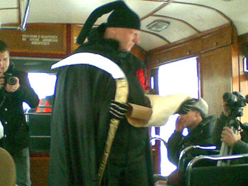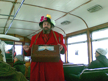 Нечаянный испытатель заячьей участи – мой confrere по инженерному цеху - войдя на одной из остановок в салон первого вагона, был несколько удивлен (не скажу «фраппирован») странным общим обликом трамвайного населения, степень удивительности которого вы сами можете оценить. Итак, он удивился. Но виду не подал. И сел, не особо оглядываясь, на ближайшее свободное сиденье. И тут к нему подрулил кондуктор, который был вовсе не кондуктор, а скорей – антикондуктор, так как потребовал не оплаты проезда, а… надеть на голову шапку с длинными ушами наотлёт, которую тут же и всучил. «Стань зайцем, и тогда (говоря по-простому) едь!» - таков был его антикондукторский девиз. Пренебрежение сим навязчивым сервисом каралось выдворением из (говоря по-канцелярски) транспортного средства.