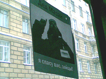 Пришлось надеть. Дальше – больше, как мог бы назвать очередное сочинение драматург Островский, если б надумал к 47-и своим пьесам прибавить еще одну. Ибо вслед за лжекондуктором подвалил контролёр – в образе чёрного зайца с косой (от глагола «косить», раз уж я сегодня занялся филологией) и свитком в лапах, в котором он пытался найти спрошенное им предварительно имя новичка, и если находил, то безжалостно изгонял изгоя (не помню, как этот силовой приём обзывается по-филологически) из заячьего ковчега, ибо как иначе назвать таковой, когда с его стёкол глядит на нас сам Дед Мазай с лозунгом «Я спасу вас, зайцы!»?