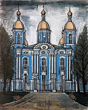 Бюффе стал известен в том же, что и Сулаж, году - 1947-ом. Работы его, как бают искусствоведы, проникнуты ощущением обреченности, одиночества. Тем не менее полувековая карьера художника складывалась удачно. Выпускник Школы изящных искусств сразу же стал контрактником респектабельной галереи Мориса Гарнье, имевшей обширную и состоятельную клиентуру. Однако музеи современного искусства отказывались принимать его работы, считая их салонными. И в престижных государственных музеях художник смог выставиться лишь два раза: в ГМИИ им. Пушкина и Эрмитаже. В последнем выставка Бюффе состоялась в 1992 году все в том же Николаевском - самом большом - зале Зимнего. Картина с ледоходом (метра два на четыре), будучи тогда же подарена автором Эрмитажу, ныне стоит на боку в одном из помещений хранения живописи музея.