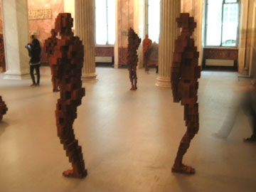 Из записок Карлсона2011-12-18. Leonid Engalichev … на первом этаже Нового Эрмитажа в Античном дворике завелись ржавые мужики аглицкого артиста Энтони Гормли., причем не в первый раз. В том годе был один мужик, а тут цельных 17! При этом антиков-аборигенов оне повытеснили полностью (те сгрудились в вестибюле Николаевской лестницы – той что выходит к дверям с атлантами).