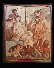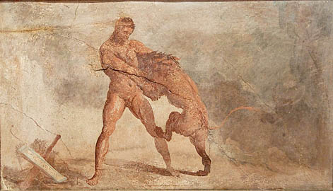 Большую художественную ценность имеют и знаменитые фрески из Геркуланума. Специалисты полагают, что фрески являются римскими копиями 60-70-х годов н.э. с ещё более древних греческих оригиналов. Главным персонажем этих росписей в городе Геркулеса является естественно Геркулес.