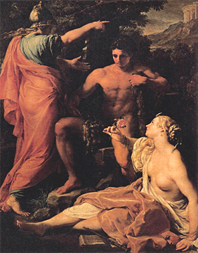 - в 18-летнем возрасте на острове Киферон очутился на распутье: две нимфы (порочность и добродетель) предложили ему выбор – легкая дорога наслаждений или тернистый путь трудов и подвигов;