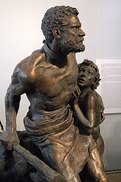 Выполненная в натуральную величину скульптура из тонированного под бронзу гипса была найдена на площадке второго этажа Церковной лестницы при вскрытии кирпичной кладки стены Восточной галереи во время работ по установке электрощита. Скульптор Владимир Александрович Беклемишев окончил Санкт-Петербургскую Императорскую Академию художеств, в 1888-1892 годах был пенсионером Академии художеств в Париже и Риме. Группу "Беглый раб" художник исполнил в Италии в 1891 году. И уже в 1893 году "Беглый раб" представлял русское искусство на Всемирной Колумбовой Выставке в Чикаго, посвященной 400-летию открытия Америки Колумбом. Долгое время скульптура являлась личной собственностью Беклемишева, подарившего её Музею Академии художеств в 1918 году. В 1930 году она была передана в Государственный музей Революции, занимавший в то время часть помещений Зимнего дворца, в одном из залов которого она несколько лет экспонировалась. После Великой Отечественной войны музей Революции получил собственное здание - особняк Кшесинской, куда и должен был переместиться и "Беглый раб", но который из-за своего неудовлетворительного состояния был оставлен в Зимнем дворце. 22 февраля 1947 года скульптуру замуровали в проёме между стенами Восточной галереи и Церковной лестницы Зимнего дворца (о чём свидетельствуют найденные записка и фотография с подписью) и – благополучно забыли. Таким образом, "Беглый раб" провел в неволе более полувека, считаясь специалистами утраченным.