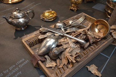 «Только этого мало» - сказал поэт Арсений Тарковский, и как в зеркало глядел: в Синей спальне Зимнего дворца 7 марта уже нынешнего года открылась выставка из фондов Эрмитажа «Вторая жизнь. Монеты и медали в европейском прикладном искусстве», т.е. монеты и медали (в основном серебряные и золотые), которые, выйдя из употребления в своем основном качестве, становились источником вдохновения для мастеров прикладного искусства разных стран, эпох и стилевых направлений. Эти м&м можно видеть, например, вмонтированными в дно ложек или в броши-медальоны. На выставке демонстрируются украшенные монетами предметы мебели, кубки и кружки, медальоны и табакерки.