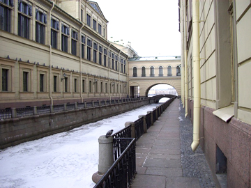 И каждый, кто обременен школьным знанием сюжета повести «Пиковая дама», может попытаться поймать в зеркальной амальгаме двухсотлетнедавнее отражение прототипа этой пиковой графини. Особняк, где Голицына долгое время жила и где скончалась в том же, что и Пушкин, 1837 году - в возрасте 94 лет, находится в пяти минутах ходьбы от Зимнего, там теперь поликлиника эрмитажной пожарной части. А другой герой повести – Германн – в экранизации 1982 года прогуливаетcя по набережной Зимней канавки как раз супротив здания Нового Эрмитажа.