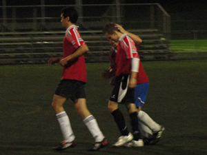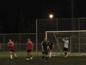 Burnaby Strikers FC vs We'R United FC 2:42010-09-13. Leonid Puhovskiy We'R United: Степанюк(с), Марчук, Стригун, Ислам, Лейцус, Сидор, Пуховский, Кайда, Логинов, Борисов, Сергейко, Бежин, Татаринов, Войсович. Голы: Сергейко (0:1), Ислам (0:2), Марчук (1:3), автогол (2:4) Состоялась наша первая игра в сезоне 2010\2011. United играл в красной форме, любезно предоставленной нам во временное пользование командой RUSSWEST. C самого начала красные зажали соперника на его половине, и не давали поднять головы, по этому гол не заставил себя долго ждать. Андрей Сергейко, получив мяч от Леонида Пуховского, вошел в штрафную и играючи переиграл голкипера. 1:0! После забитого гола команда и не думала сбавлять обороты. Хорошие возможности для взятия ворот имели Сергейко и Борисов, но вратарь был начеку. Постепенно игра стала выравниваться, и тут блеснул наш новоиспеченный центральный защитник Назик Ислам. На подборе после подачи углового Назик хладнокровно пробил сквозь гущу игроков в штрафной, и мяч попал прямо в угол! 2:0! Теперь уже игроки команды соперника начали наращивать обороты, дабы не упасть в грязь лицом в первом же матче сезона, да еще и против дебютанта лиги, и добились своего. Нападающий Strikers в сутолоке возле нашей штрафной, с разворота пробил, и так удачно попал, что мяч прошел между ног нашего защитника и попал прямиком в угол. К сожалению в этом эпизоде наш вратарь был бессилен. 2:1. После пропущенного гола футболисты United поняли что отдавать инициативу сопернику ни в коем случае нельзя, и стали наращивать давление. Результат не заставил себя долго ждать. Гол вновь пришел со стандарта. Наш главный герой этой игры, Роман Марчук, получил пас от Александра Сидора и неотразимым ударом, в дальнюю девятку, восстановил разницу в 2 мяча. Хотелось бы сразу добавить что Роман провел просто замечательны матч. В защите играл настырно и агрессивно, а его отличные подключения в нападение постоянно заставляли оборону соперника включать максимальные обороты что бы не пропустить очередной гол. Во втором тайме игра шла по такому же рисунку. Красные атаковали, черные защищались. Наши игроки имели несколько отличных возможностей для взятия ворот, но немного не хватало везения, к тому же судья-колобок, не всегда успевал докатываться до нужной точки, и рассмотреть нарушение против наших нападающих. United давил, Strikers отбивались. Все игроки нашей команды находились на половине поля соперника, и в один момент мы зевнули нападающего дежурившего на центральной линии, и поджидающего длинный пас за спину защитникам. Выход 1 на 1, и мяч в сетке наших ворот. 3:2 Пропущенный гол нас несколько не надломил, и команда продолжала гнуть свою линию, и в конце концов это давление дало результат. После подачи с правого фланга в центр штрафной, Иван Бежин удачно поборолся с защитником и вратарем соперника, и мяч попав в одного из них, залетел в ворота. 4:2!! До финального свистка, счет не изменился, и We'R United одержал свою первую победу в этом сезоне, в этой лиге, и в этой жизни. Так же я хотел бы отметить еще несколько событий в матче. Во первых, связку наших центральных защитников. Антон, и Назик играли на этой позиции впервые, и на мой взгляд, очень удачно. Голы же пропущенные командой это скорее удача соперника, и минутная потеря концентрации всей команды. Во вторых, Рому Лейцуса, который при счете 3:2, после подачи углового игроками Strikers, вынес мяч с само