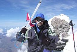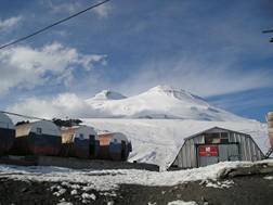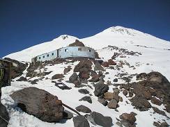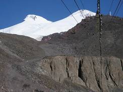 Mt. Elbrus2005-09-14. Ravil Chamgoulov ![]() Long flight across the Atlantic Ocean ferried me to Moscow, the capital of Russia. The Kremlin was a residence of Russian Tsars for hundreds years. Now it was a residence of former KGB chief President Putin. I spent a night in Moscow, and next morning, on September 14-th, 2005 I was in the airport again to fly to the Caucasus Mountains. It was not the best time to climb Mt. Elbrus, because the weather is not stable. The best season is since the middle of July till the middle of August. But I didn't have other option: I was in a business trip to attend an international scientific conference, and just took a week of vacation for the climb. Anyway, five days later I was on the top of Mt. Elbrus. I boarded a plane that flew to Mineralniye Vody airport- the gate of Caucasus. From Mineralniye Vody I took a bus to Nalchik – the capital of Kabardino-Balkariya, autonomous republic in Elbrus region. I will skip my adventures along this travel; they just confirmed the simple truth I was well aware about: never travel alone in Caucasus. By midday I was in my friend’s home in Nalchik. I left my backpacks and rushed to buy food and fuel for my trip, and a ticket for the morning bus. But the main thing I needed to do was to obtain a permit from the local frontier troops to visit Elbrus area, since Elbrus is located near the Russia- Georgia boundary, and nobody is allowed to be there without such permit. (Usually travel companies take care about it, but I didn’t use service of any company). Luckily I received the document the same day and was ready to continue my journey. In the morning, September 15-th I took a bus to Terscol, then a taxi to Azay village. A chair-lift to Elbrus slopes starts in Azay village. (04) The chair-lift has three stations on its way up to the mountain. After the first section, which is equipped with gondola, one starts seeing the double-headed summit of Mt. Elbrus. (05)