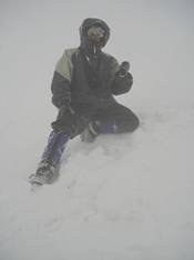 In the evening the weather didn’t look too promising (14), however I decided to climb next morning. I started the accent at 1:30 am. By the dawn I was above Pastouckhov Rocks. Dense clouds limited the visibility to less then 10 meters. I couldn’t see the next mark from the previous one (15, 16), they were on the distance about 30- 50 meters with each other. The route is not the same every year; it is changing with the glaciers motion. I climbed Mt. Elbrus four times in the previous years, and the situation is always different. I kept follow the virtual line from the previous marks, and was able to stay on the trail. Finally I reached the saddle. My altimeter indicated 5,250 m. I was very tired from the hard physical work and luck of acclimatization. It was only my third day in the mountains. The weather wasn’t improved, it was getting worse. I made a picture of myself, (17) and began a descent. I was fortunate enough to find the way down without a delay.