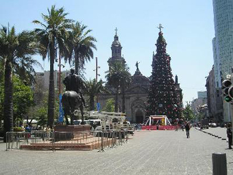 The temperature in Santiago was + 30° C. Keeping in mind that later I faced – 40° C in Antarctica, the total temperature range in this short trip was 70° C. It was Christmas time, and Christmas trees decorated the city along with palms. |