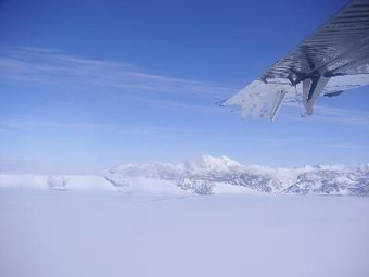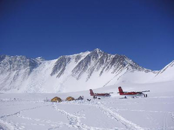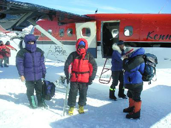 Vinson Massif was now under the wing. | | The planes landed at the base of Vinson Massif. |