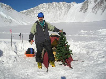 On the summit of Vinson Massif (4,897 m.). | | Next day I made all the way back to the base camp.