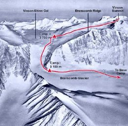 Extremely strong winds are one of the dangers in Mt. Vinson and Antarctica. The atmospheric pressure at the South Pole is low, and air masses are being sucked into the regions at high altitudes. |