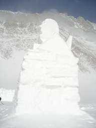 I took this picture while melting snow in the middle of my way to Camp 1. Group of climbers is approaching slopes of Vinson. | | Now I am very close to Camp 1. This is a snow statue of Mr. C. Vinson made by a previous group of climbers, who were trapped in the camp by bad weather for five days. |