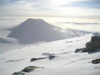 From the High Camp the route follows Branscomb Ridge to the summit (7 km distance, 1,000 m. elevation). |
