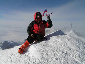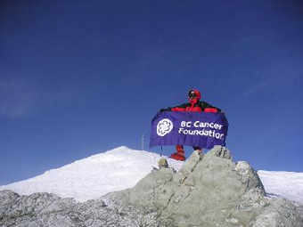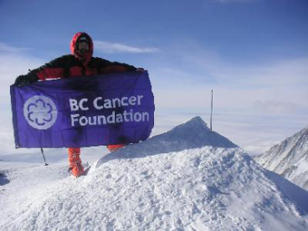 After 6 hours from the start I reached the summit of Vinson Massif. | | On the top of Antarctica with the BC Cancer Foundation. |