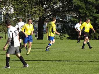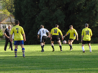 Yuriy Bespalov: Перваая игра - первые радости... Ничего не скажешь - отличное начало сезона. Главное, что-бы "не закружилась голова от успехов".Игра началась на равных упорными атаками с обеих сторон. На первых минутах матча, пока Володя Сидоренко отвлекал на себя соперника своими стремительными проходами , Дима Воробей распечатал ворота противника. К середине первого тайма нескончаемые атаки соперника увенчались успехом - 1:1. Игра вошла в ровное русло. Но тут отличился Михаил Попов - быстрый дриблинг, пас вперёд, мяч снова у Михаила. Красиво разыгранная комбинация - и мяч в сетке соперника. Со счётом 2:1 в нашу пользу команды ушли на перерыв. Тяжеловато было отражать атаки соперника в первой половине, но защита во главе с Феликсом достойно держала удар. В начале второго периода игра опять шла с переменными атаками, пока соперники не сравняли счёт - 2:2. Нейтральным счёт оставался недолго, и после очередной нашей атаки Михаил Попов головой вколачивает свой второй мяч - 3:2 в нашу пользу. После этого пришлось выдержать такой шквал атак соперника, что у нашего защитника Сергея Гончарука сдали нервы и за удар по ногам он был удалён с поля. Но уже чуствовалась усталость соперника, а наши ребята самоотверженно сражались за мяч в середине поля, как неудержимые всё рвались вперёд. Несколько выходов один на один с вратарём не были реализованы Владимиром Сидоренко - сказывалось нервное напряжение. Володя, как стрела, сковал на себя всю защиту, что позволило Михаилу Попову забить свой третий мяч - 4:2. Потом Михаила прорвало, и на вдохновении своим четвёртым мячом он ставит жирную точку в этой игре. 5:2 Усталые, но довольные наши игроки прокричали "ура" и пожали руки сопернику команде Vancouver Regals. | |||||||||||
